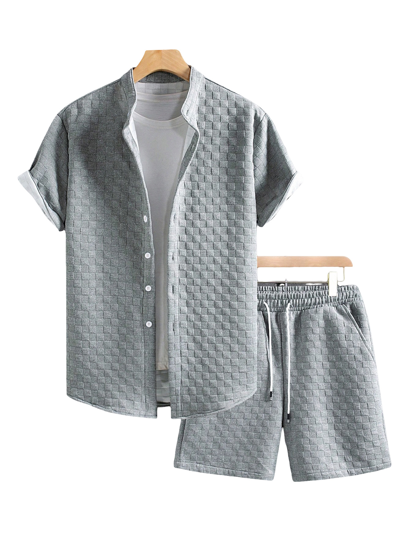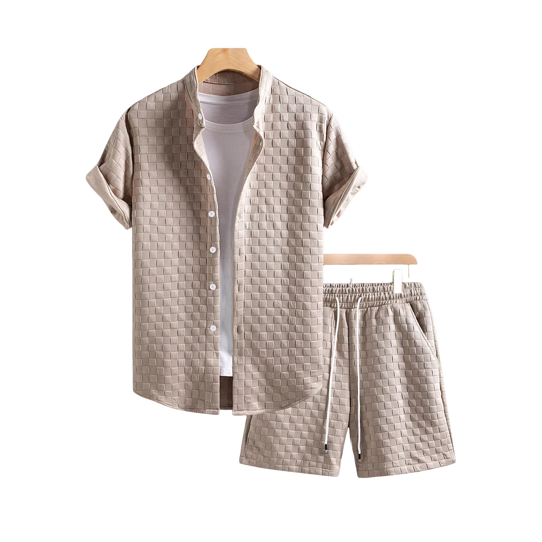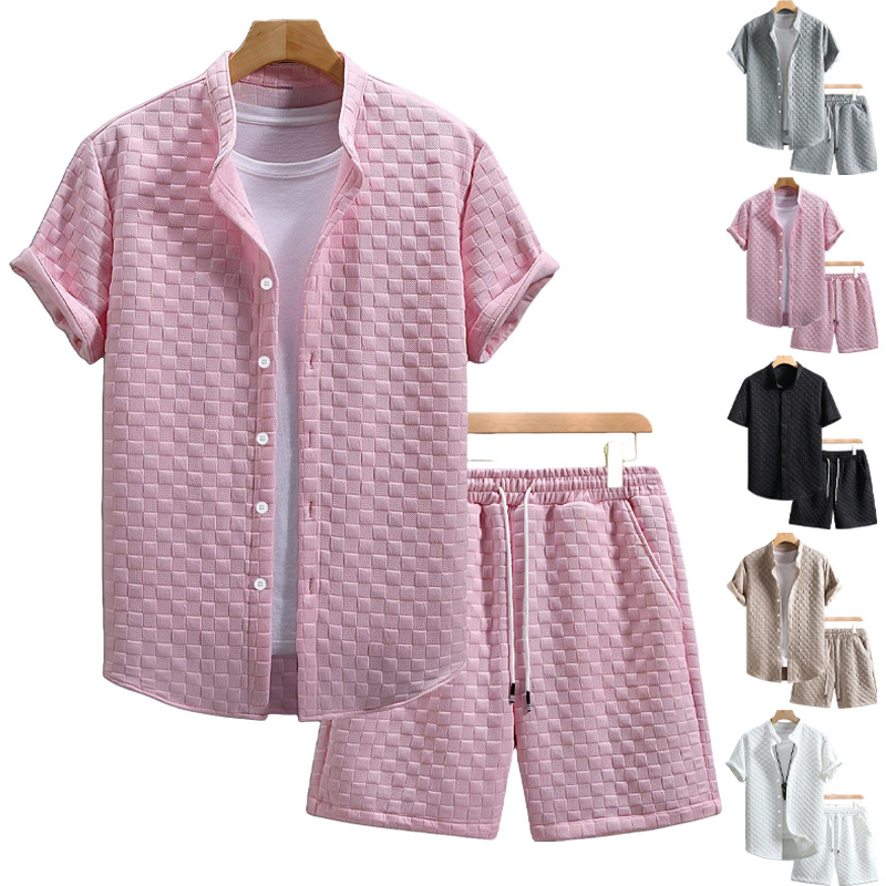 26. Cross-border new summer trendy brand solid color suit men's lapel short-sleeved T-shirt Hong Kong style loose and handsome loungewear